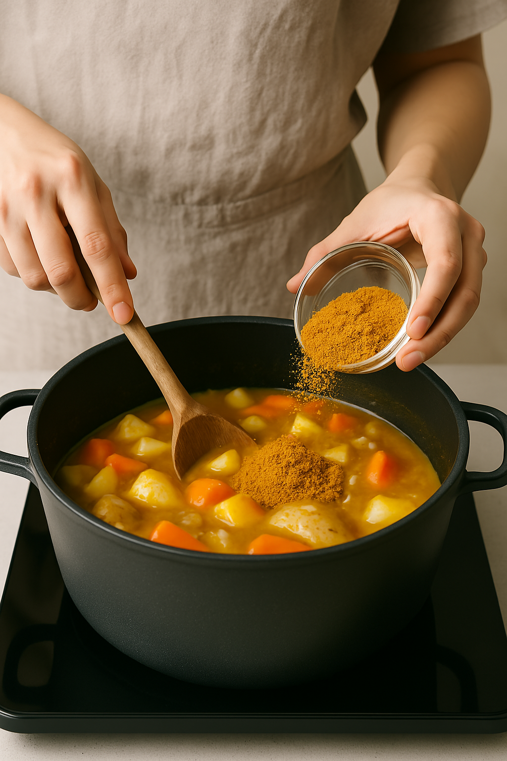 - 고형 카레 + 가루 카레 믹스: 서로 다른 브랜드를 섞으면 맛이 더 풍부해져요.