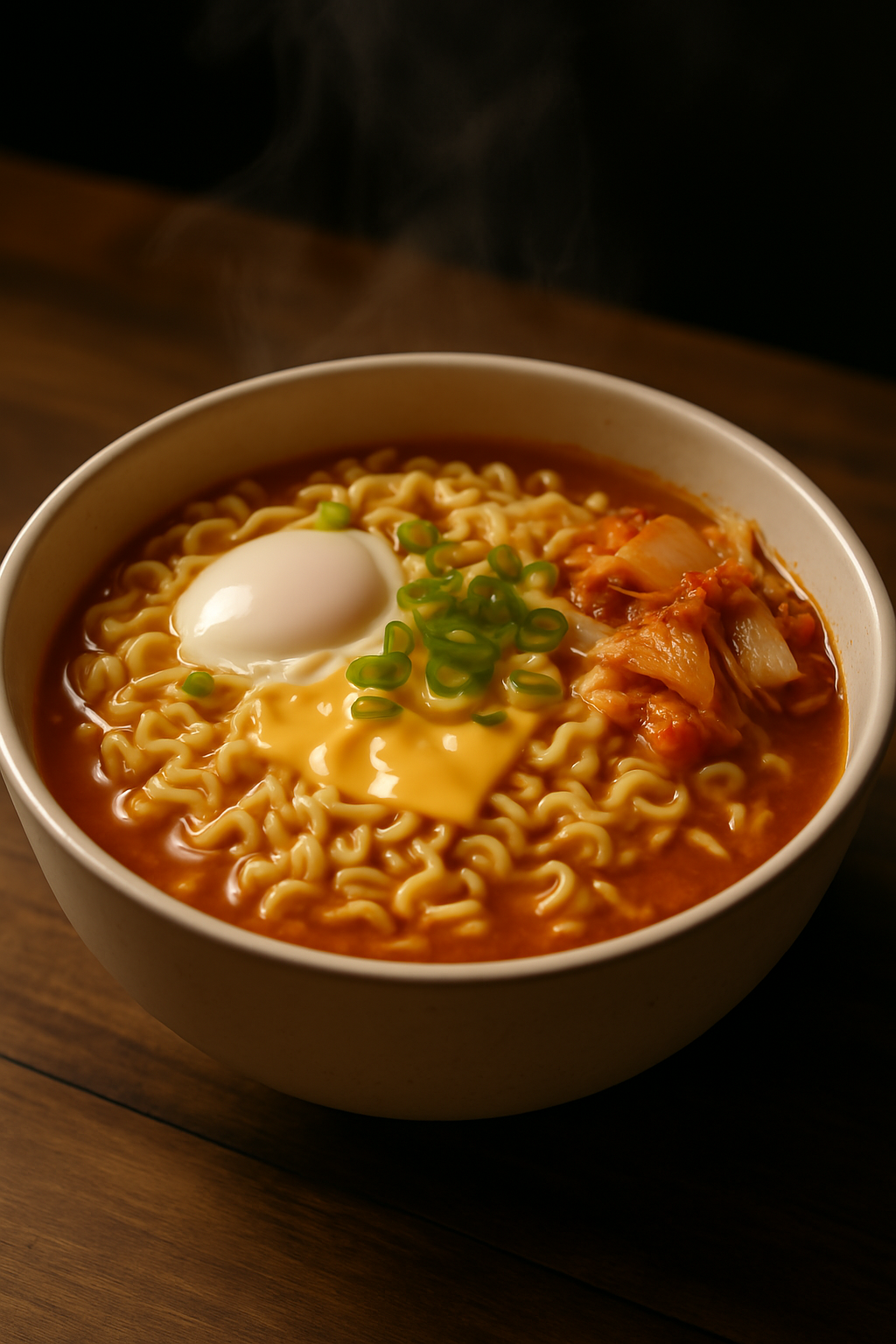 - 치즈: 체다치즈 한 장을 면 위에 얹으면 크리미한 풍미가 더해집니다.